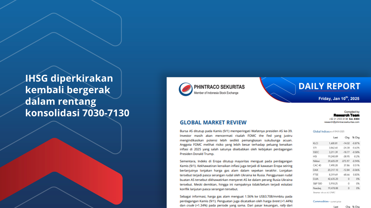 Bursa AS ditutup pada Kamis (9/1) memperingati Wafatnya presiden AS ke-39. Investor masih akan mencermati rilis risalah FOMC the Fed yang justru mengindikasikan potensi lebih sedikit pemangkasan sukubunga acuan. Anggota...