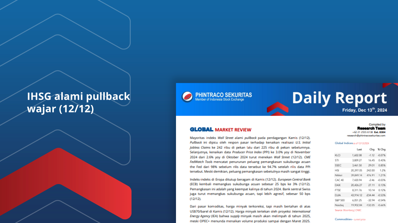 Indikasi profit taking pada indeks-indeks Wall Street berlanjut di Selasa (10/12). Pasar nampaknya memanfaatkan potensi kenaikan inflasi AS sebesar 10 bps mom ke 2.7% yoy di November 2024 (11/12) sebagai...