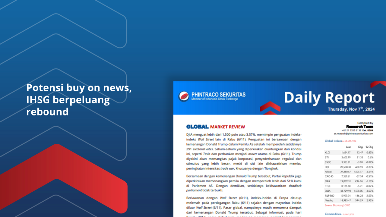 Euforia di Wall Street pasca pemilu berlanjut di AS (11/11). DJIA (+0.69%) kembali catat level penutupan tertinggi baru (11/11). Pasar mengantisipasi pidato dari sejumlah petinggi the Fed (13/11), menyusul FOMC...