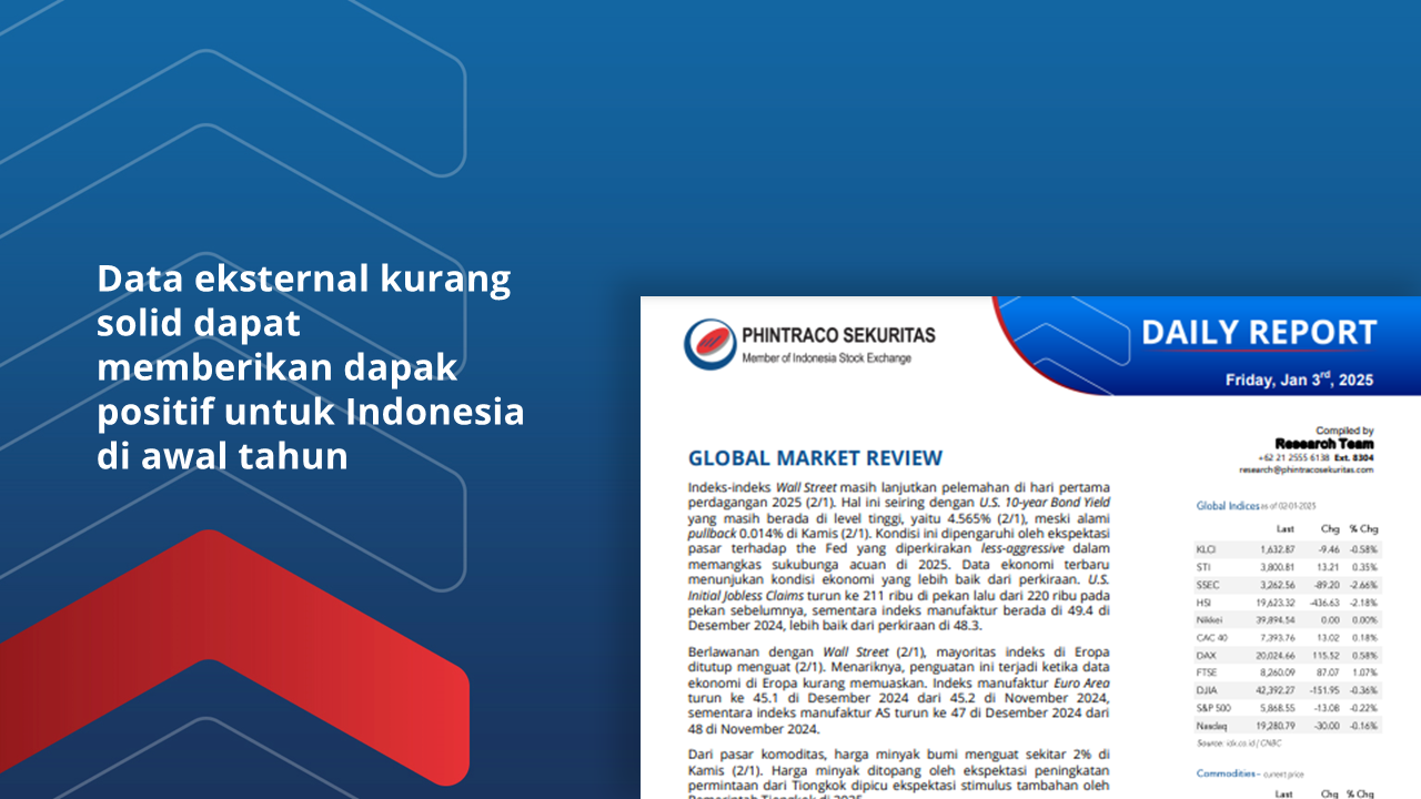 Data eksternal kurang solid dapat memberikan dapak positif untuk Indonesia di awal tahun