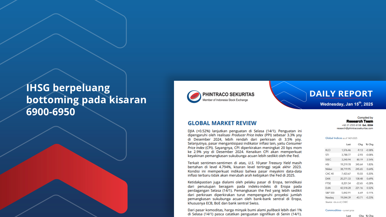 IHSG berpeluang bottoming pada kisaran 6900-6950.