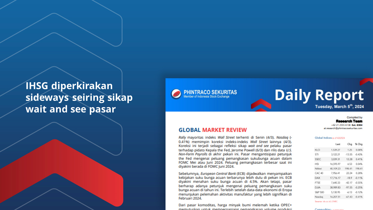 Koreksi ini terjadi sebagai refleksi sikap wait and see pelaku pasar terhadap pidato Kepala the Fed, Jerome Powell (6/3) dan rilis data U.S. Non-Farm Payrolls di akhir pekan ini.