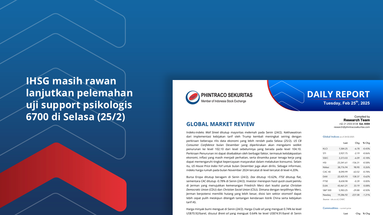 >Kekhawatiran dari implementasi kebijakan tarif oleh Trump kembali meningkat seiring dengan perkiraan beberapa rilis data ekonomi yang lebih rendah pada Selasa (25/2).