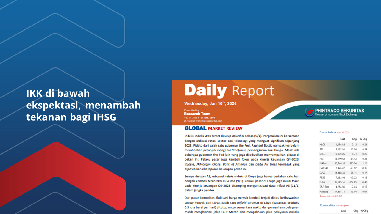 IKK di bawah ekspektasi, menambah tekanan bagi IHSG