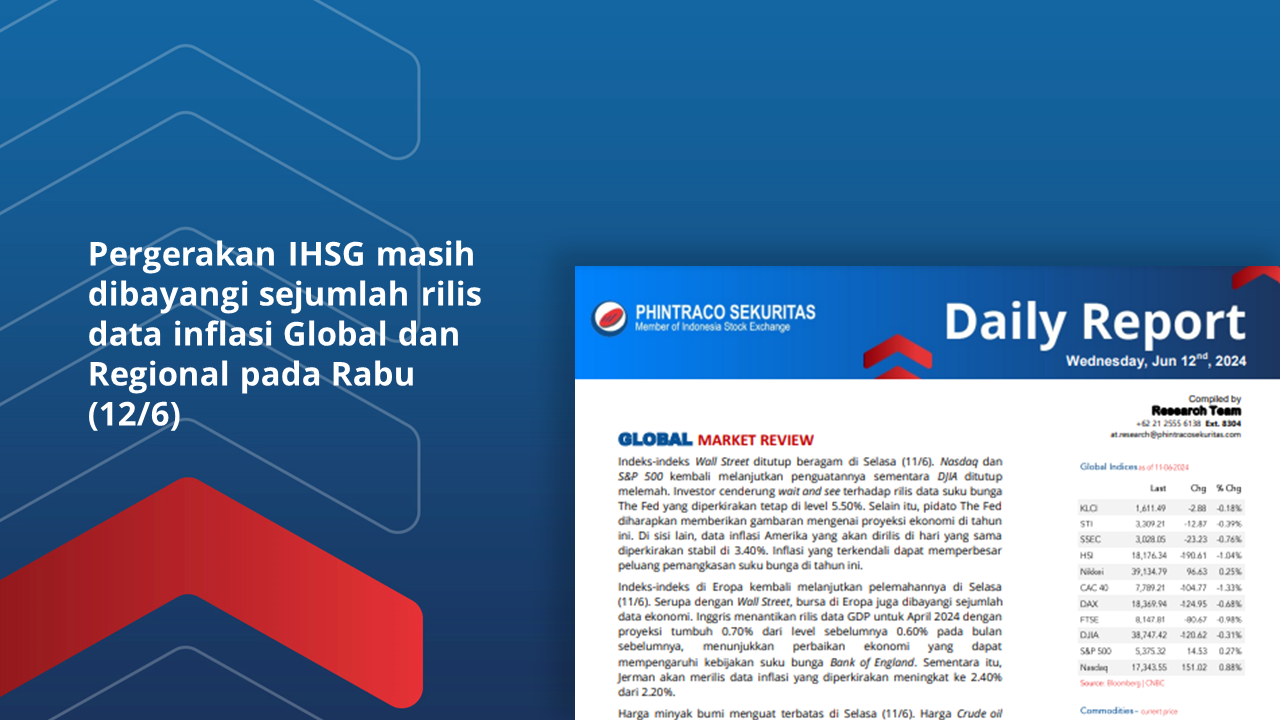 Pergerakan IHSG masih dibayangi sejumlah rilis data inflasi Global dan Regional pada Rabu (12/6)