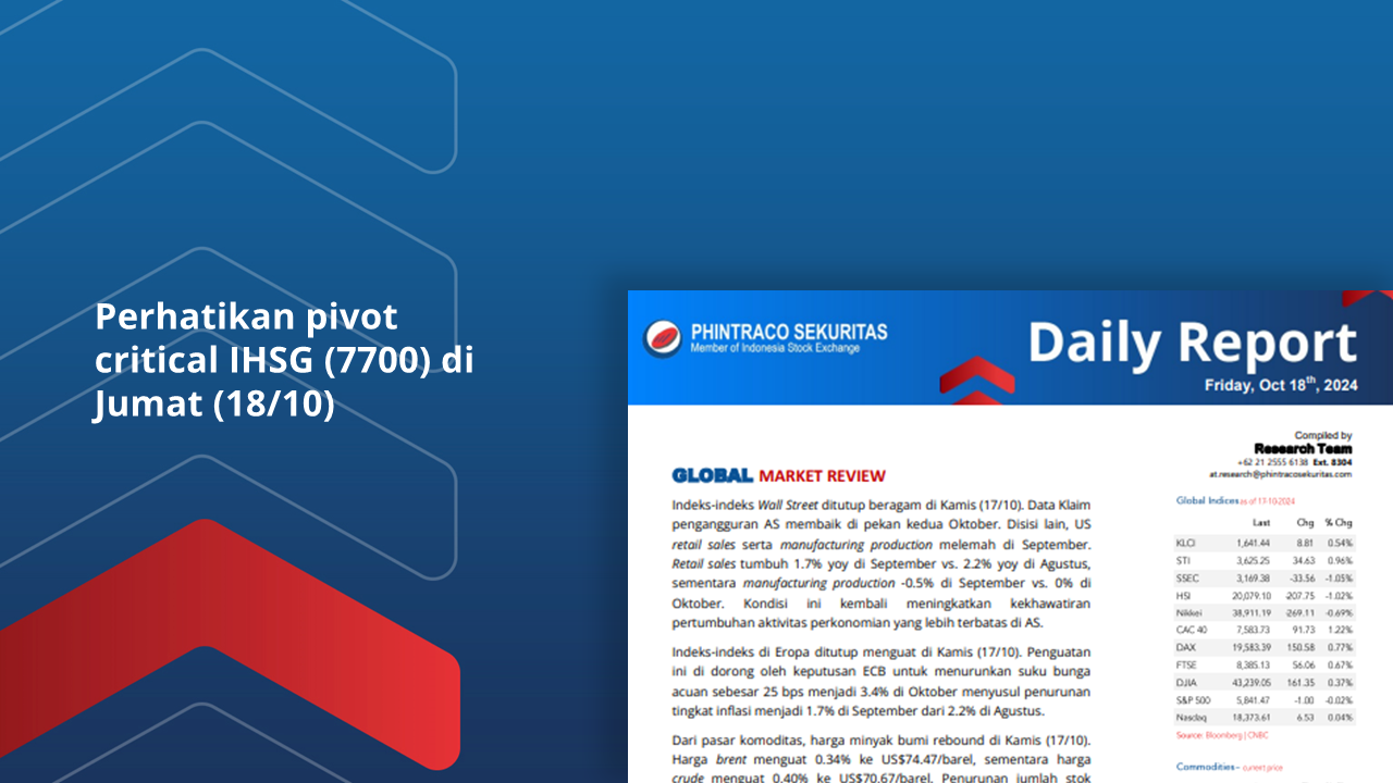 Perhatikan pivot critical IHSG (7700) di Jumat (18/10)