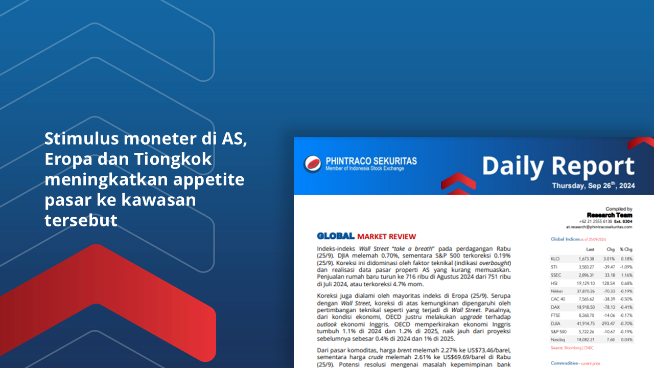 Stimulus moneter di AS, Eropa dan Tiongkok meningkatkan appetite pasar ke kawasan tersebut