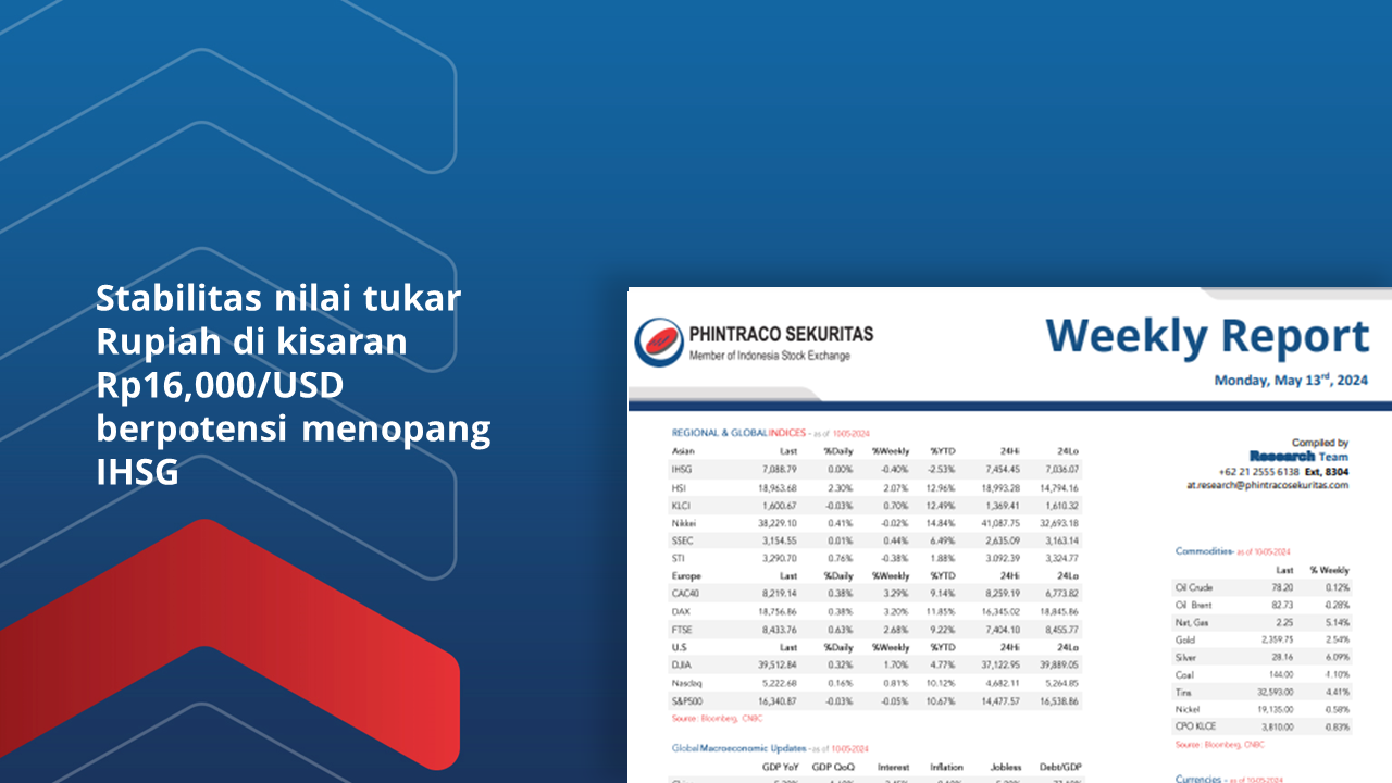 Stabilitas nilai tukar Rupiah di kisaran Rp16,000/USD diyakini berlanjut di pekan ini dan menopang IHSG untuk bertahan di atas level tersebut.