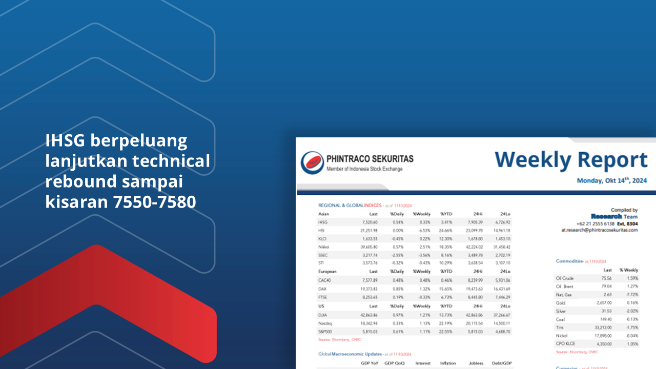 IHSG berpeluang lanjutkan technical rebound sampai kisaran 7550-7580 di Senin (12/10).