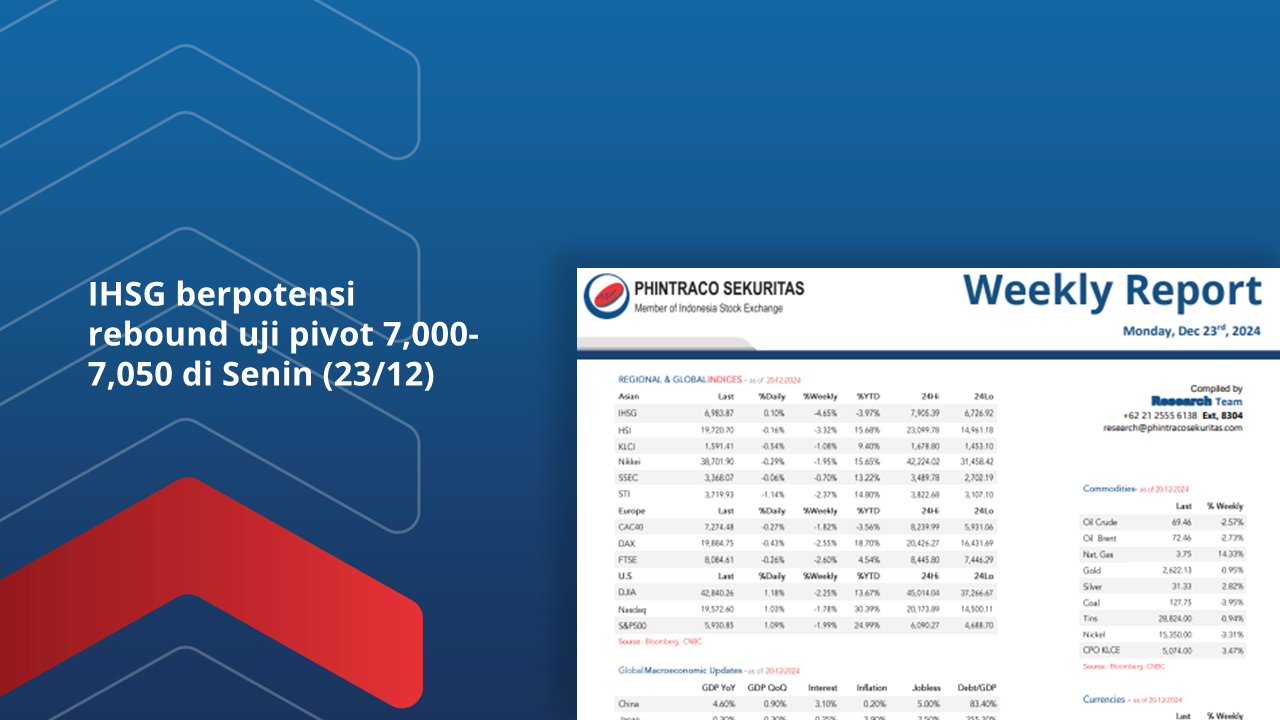 IHSG berpotensi rebound uji pivot 7,000-7,050 di Senin (23/12)
