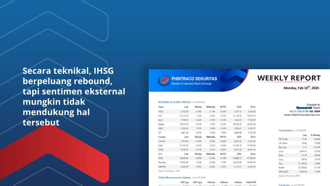 Secara teknikal, IHSG berpeluang rebound, tapi sentimen eksternal mungkin tidak mendukung hal tersebut